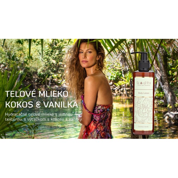 Kokosové telové mlieko s vôňou vanilky navracia pokožke jemnosť a pružnosť. Základ telového mlieka tvorí ryžový olej a jojobový olej. Ryžový olej podporuje prekrvenie, tonizáciu pokožky, jojobový olej vytvára na pokožke nemastný ochranný film, ktorý zabraňuje nadmernému vysychaniu pokožky. Prírodné telové mlieko obsahuje hydrolytické pšeničné proteíny a vitamín E, ktoré podporujú obnovu buniek a pomáhajú tak harmonizovať prirodzenú rovnováhu pleti.